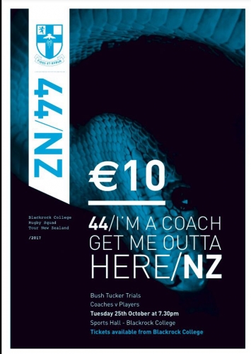"I'm a Coach Get Me Outta Here" next Tuesday at 7.30pm. Tickets are on sale in Blackrock College and cost €10.